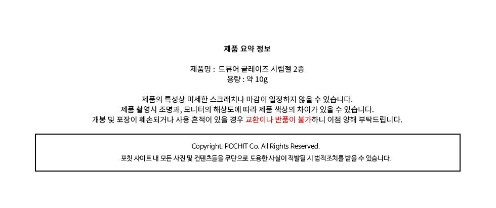 포칫 드뮤어 글레이즈 논와이프 시럽젤 2종 13,500원 / 배송비 : 2,500원 주문시결제(선결제)